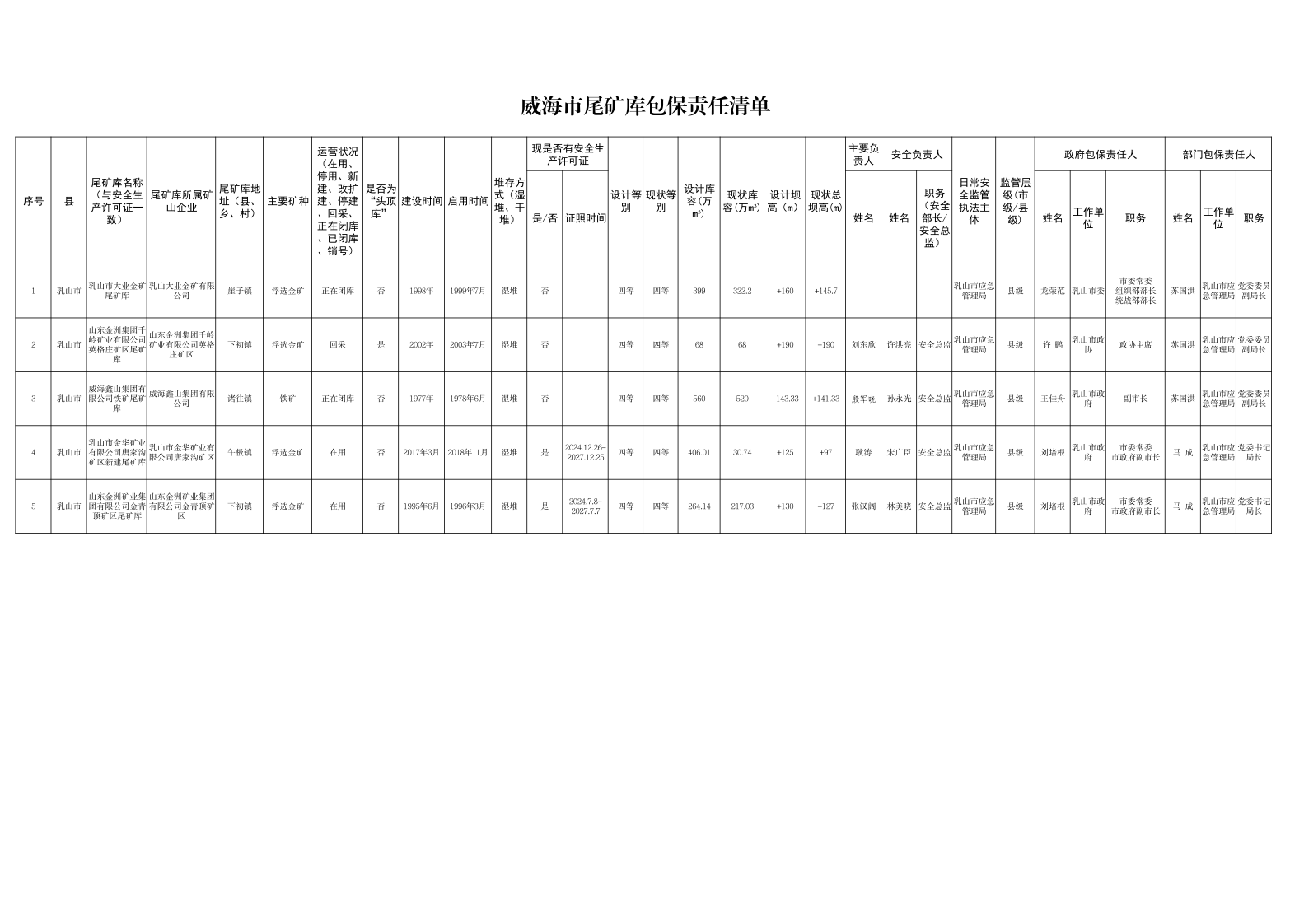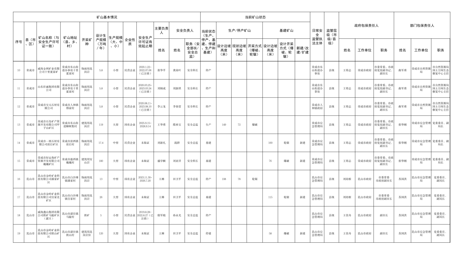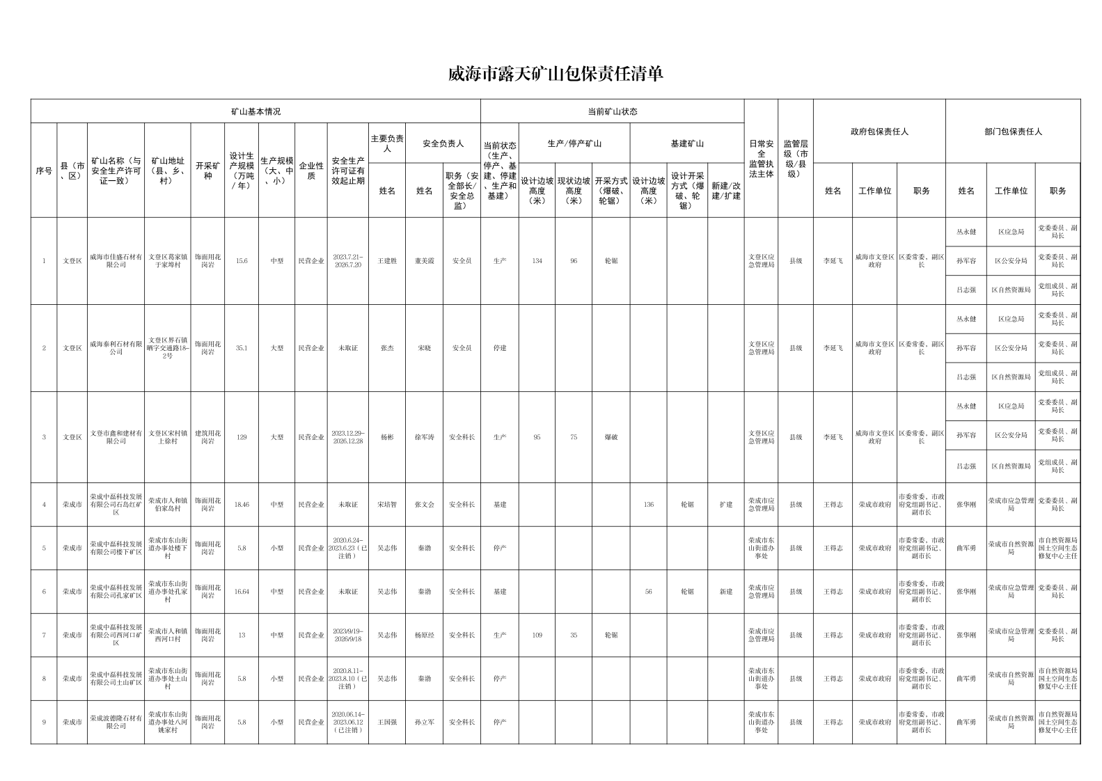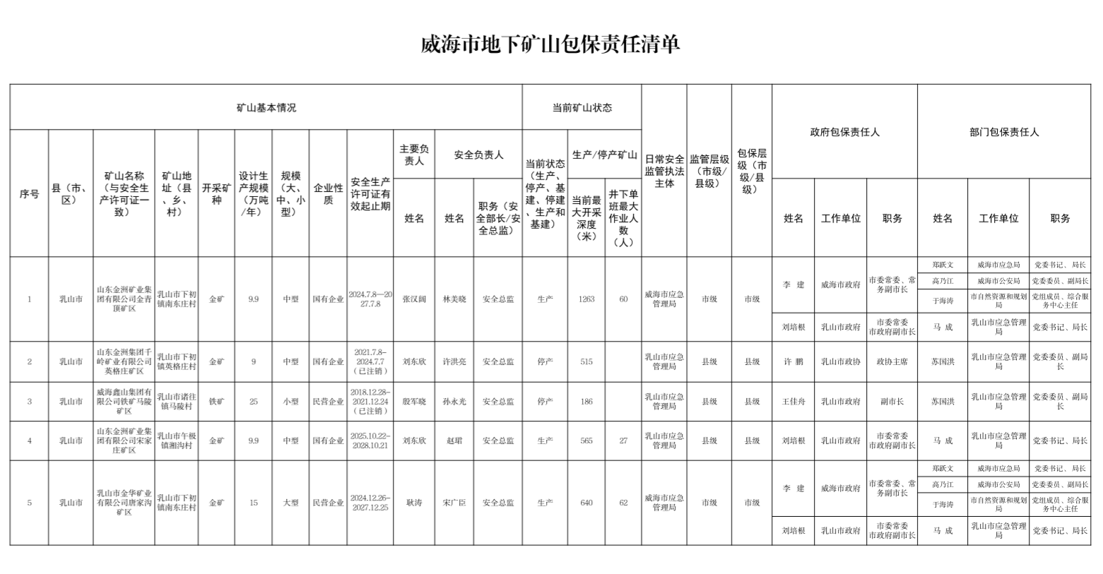 威海市非煤矿山包保责任清单(2025年12月更新)