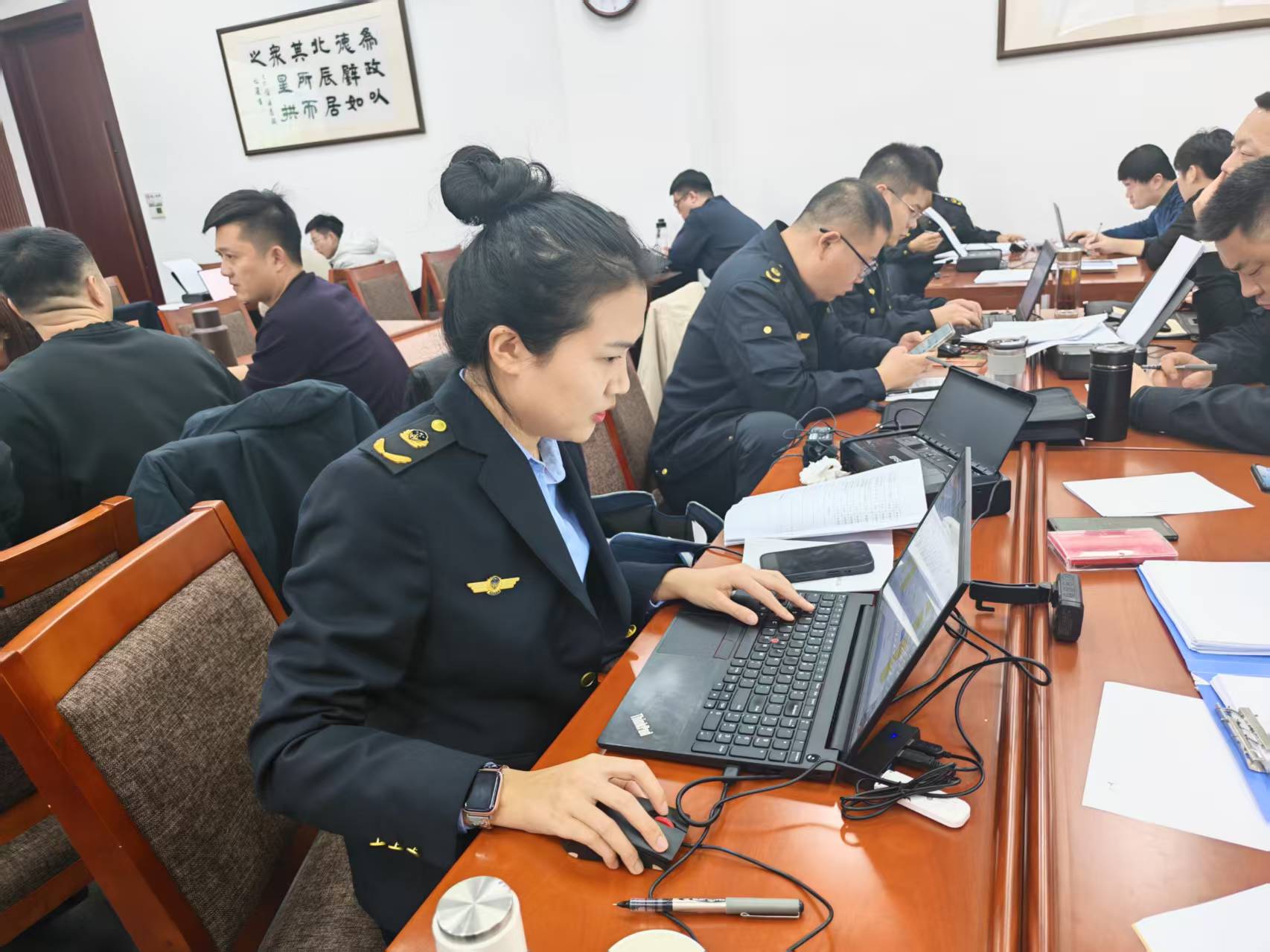 本次培训聚焦实践需求,创新采取“教、学、练、战、警、研”六位一体模式,系统设置了理论授课、现场教学、模拟执法、情景演示、警示教育、研讨交流等多个环节,实现了理论授课、专业训练与作风锤炼的深度融合。