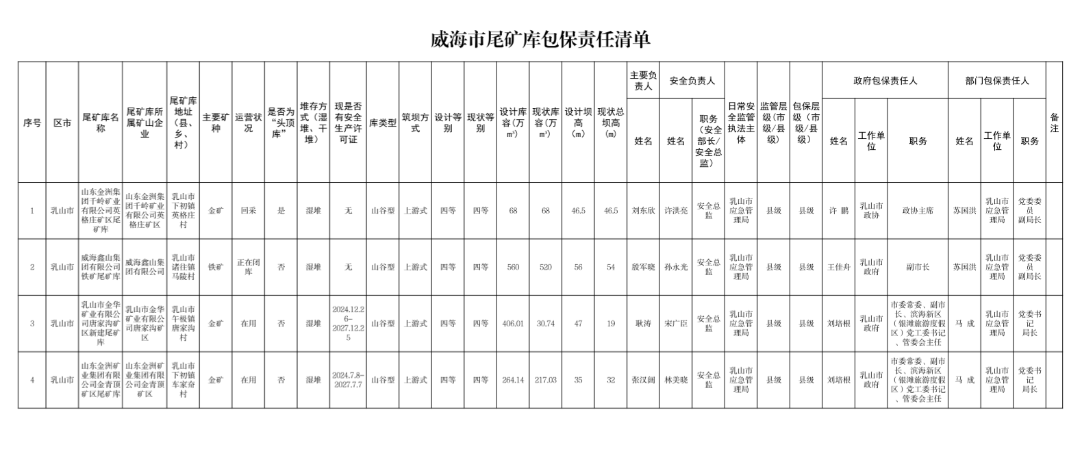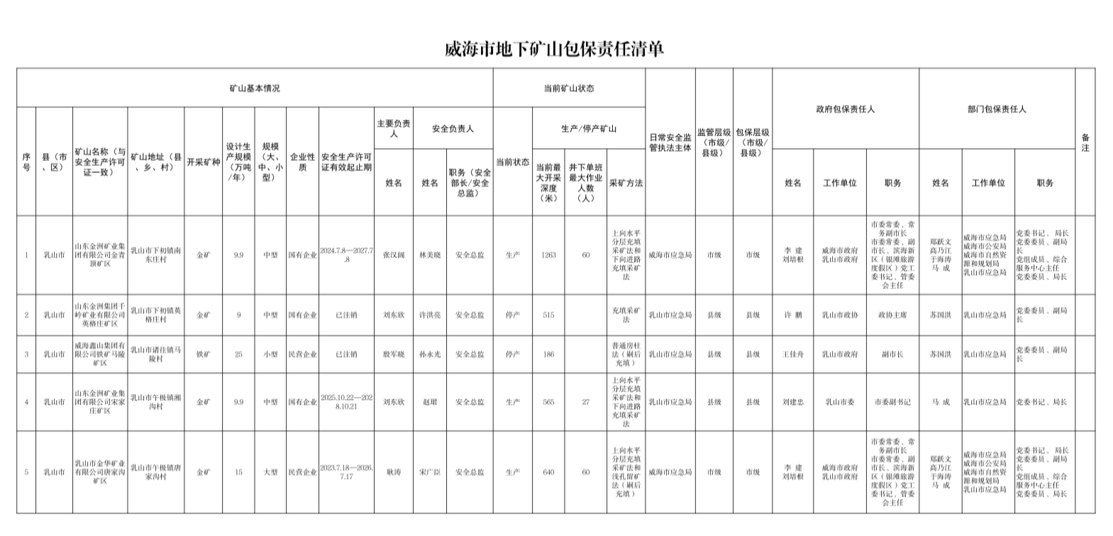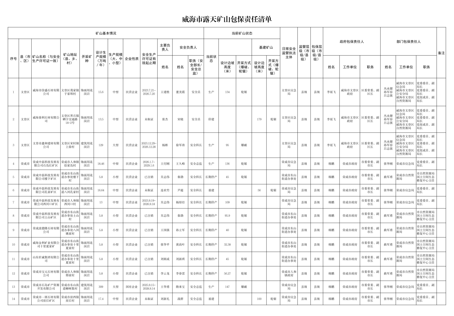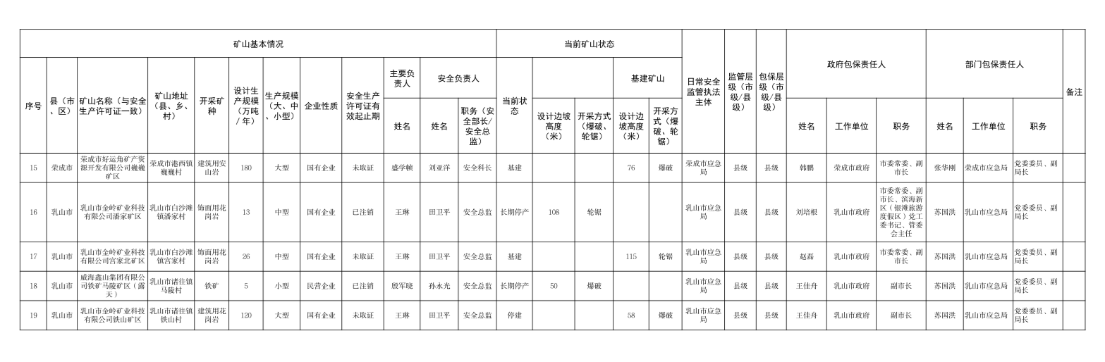 威海市非煤矿山包保责任清单(2026年)